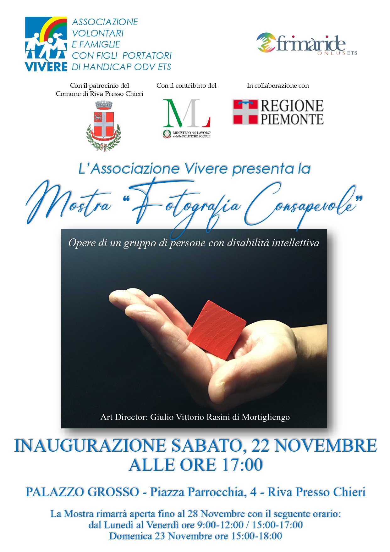 La mostra rimarrà aperta fino al 28 Novembre con il seguente orario: